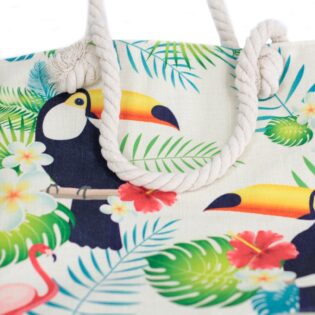 This range of Rope Handle Bags are the perfect sized shopper or beach bag. The soft rope handles are just the right length to fit comfortably over your shoulder or down by your side and the funky designs are stylish and on trend. A tough canvas tote designed with plenty of space to stow your essentials. With its zip and inside pockets help it can keep you organized, whilst the comfy rope handles makes carrying bags a breeze.
