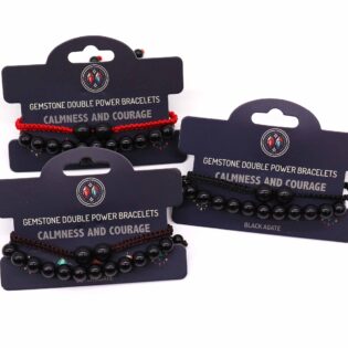 Gemstone Double Power Bracelets, whether they’re looking for a meaningful gift or a stylish addition to your own collection. Available in popular colours like red, black, and brown with two gemstone beads and a stretchy elastic bracelet adorned with matching gemstones. You can wear them individually for a subtle touch or stack them together for a bold, empowering look. Made with high-quality, natural gemstones, ensuring you receive a product that resonates both spiritually and aesthetically. Each bracelet set comes with a header card clearly stating the benefits of the gemstone, such as “Strength and Confidence, “Calmness and Courage” or “Love and Harmony” etc. The header card messaging helps convey the purpose of each bracelet at a glance.