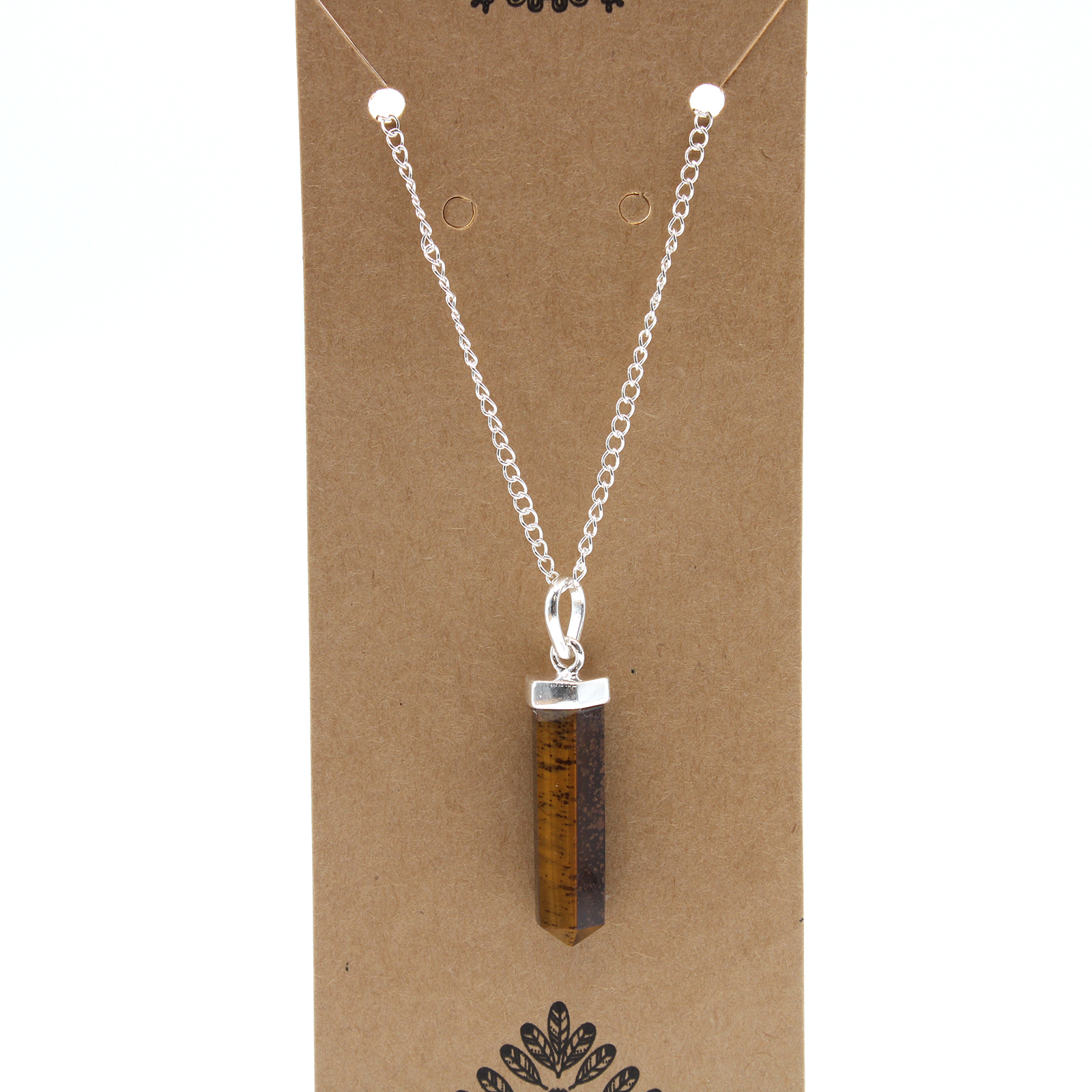 The exquisite Gemstone Classic Point Pendant in Tiger Eye is a striking piece of jewellery that showcases the captivating beauty and strength of nature
