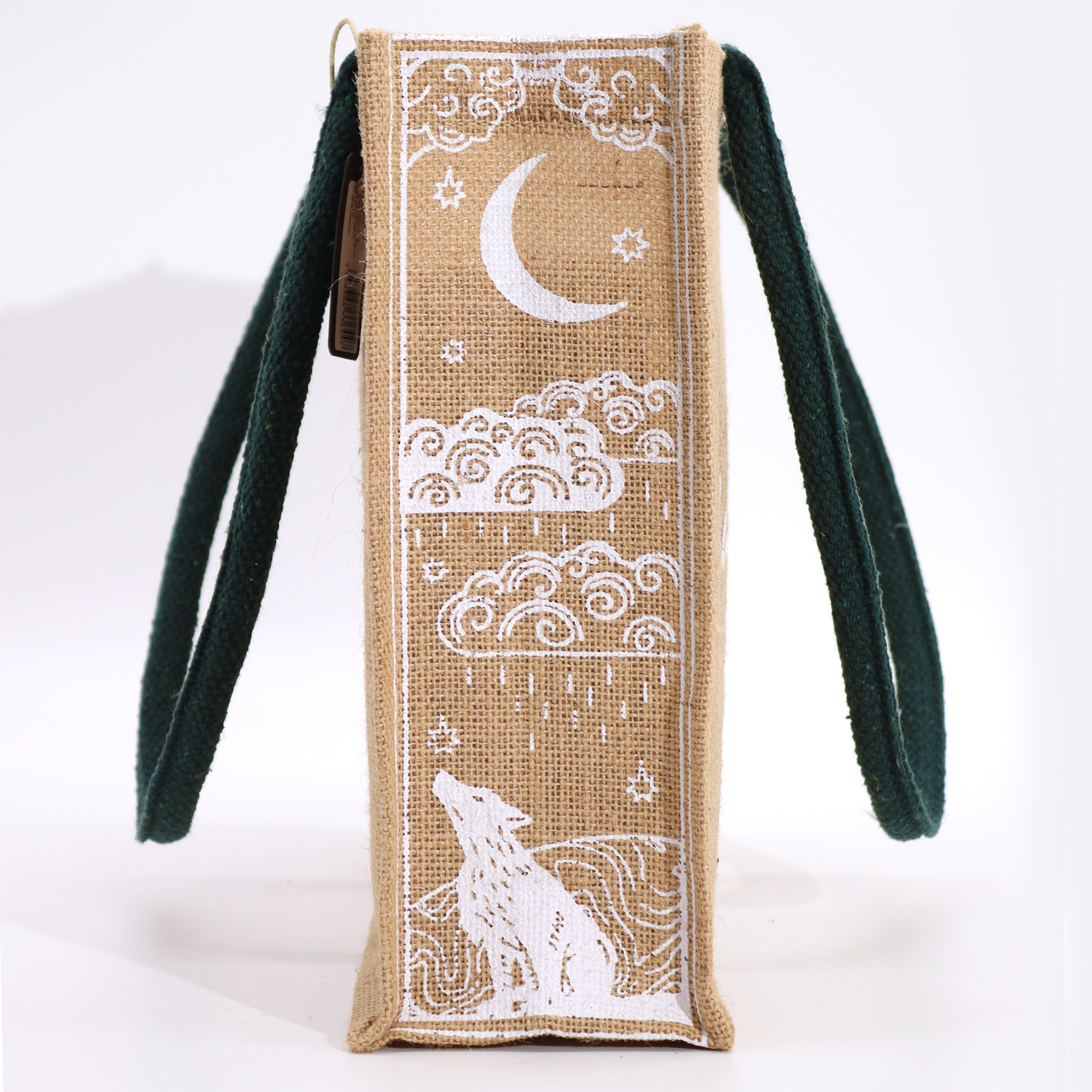Hop Hare Jute Big Bag ” I am Powerful ” Featuring a captivating moon and wolf design