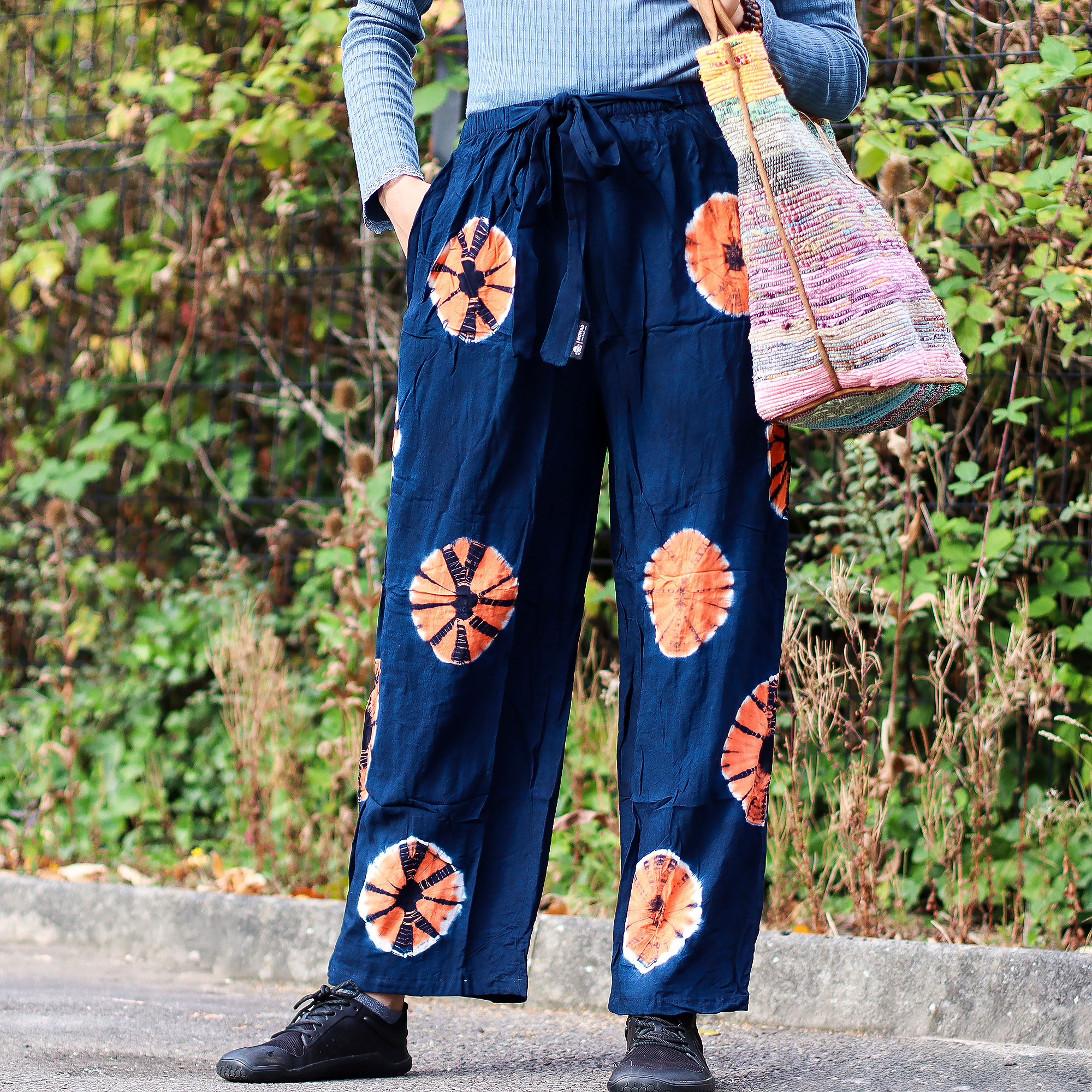 Finished with vibrant orange tie-dye circles, they offer a bold pop of colour that draws your attention