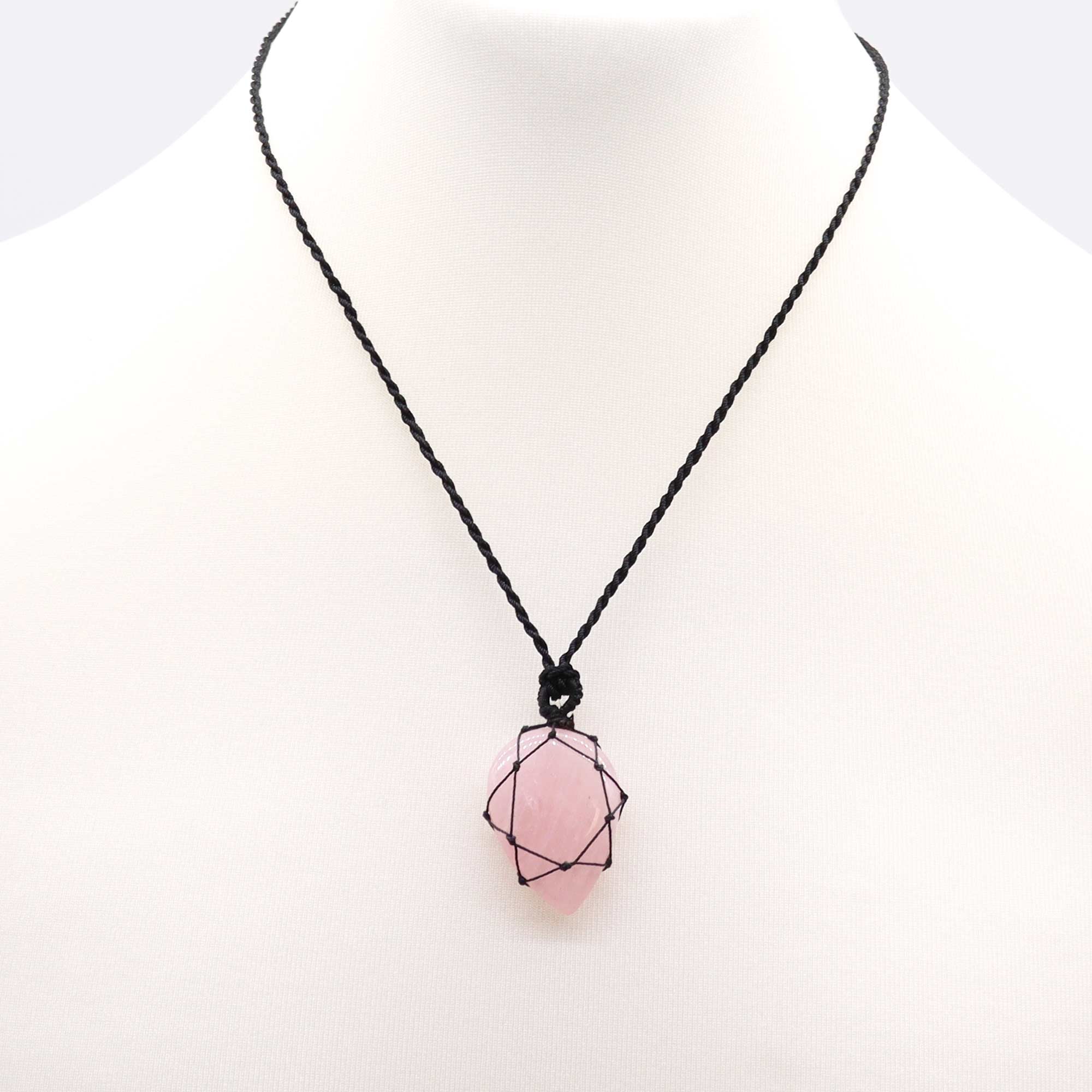 Laced Gemstone Teardrop Pendant – Rose Quartz