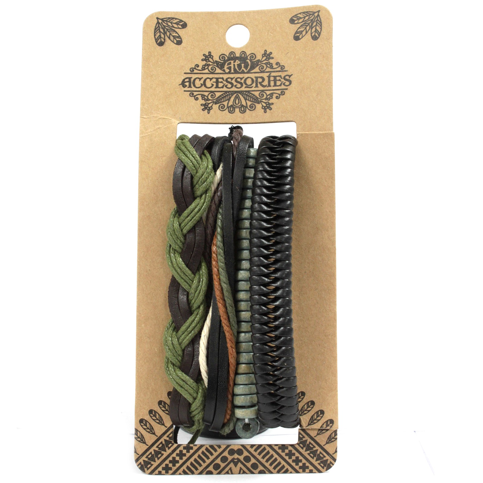 Men’s Green & Natural Bracelet Sets – These beautifully made bracelets are crafted from high-quality leather and feature stylish metal charms, with a variety of designs to choose from