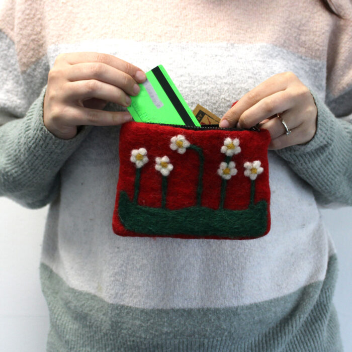 Natural Felt Zipper Pouch (asst) – Flower Garden