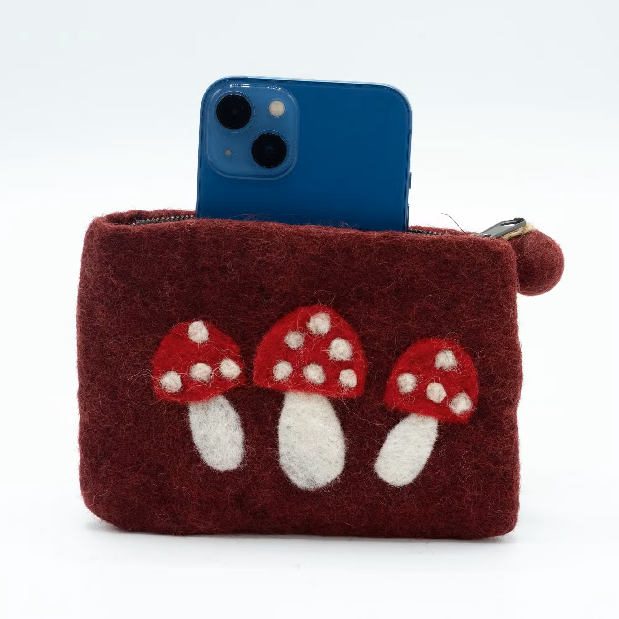 Natural Felt Zipper Pouch (asst) – Wild Mushrooms