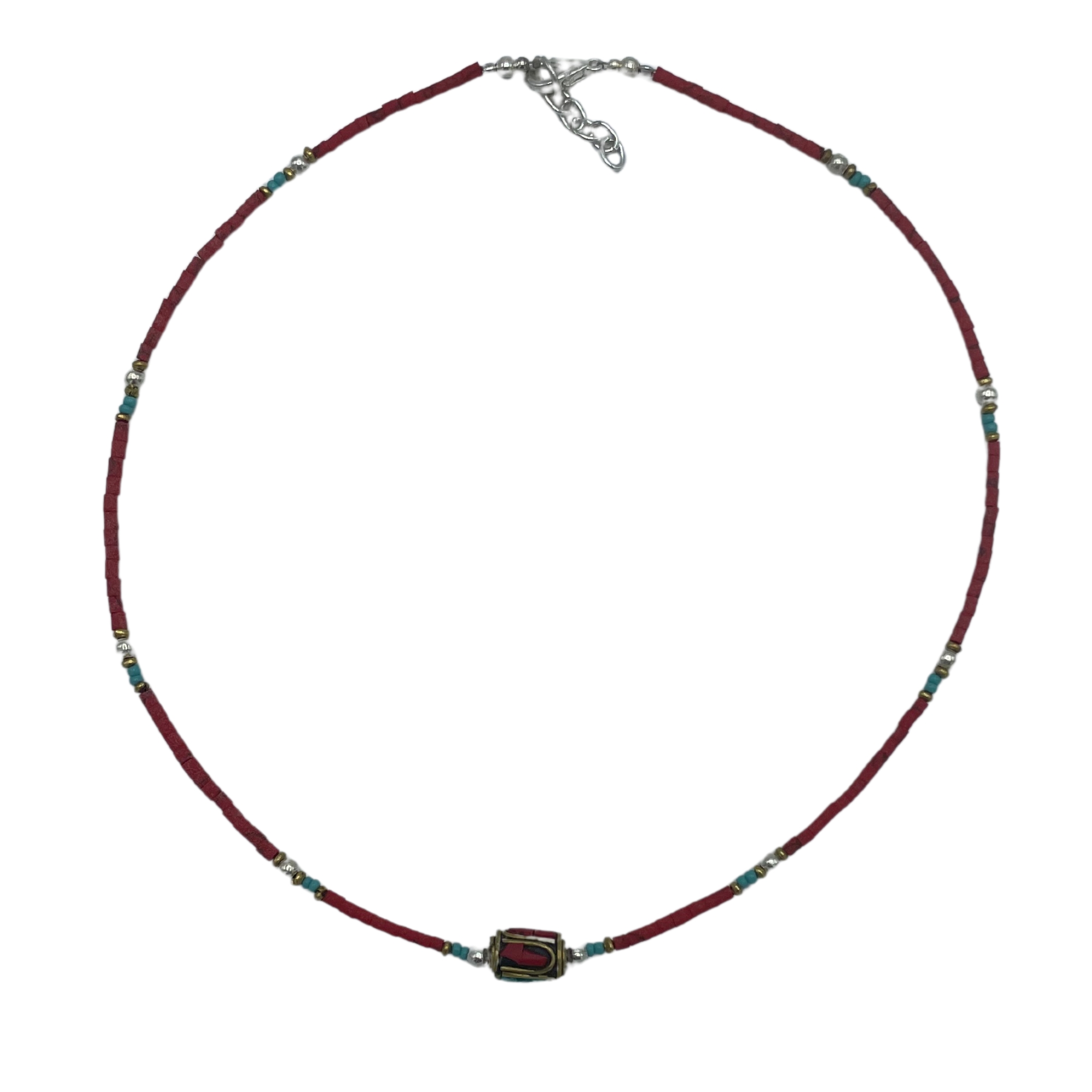 Nepalese Extra Fine Gem Necklace – Coral Tribal Bead
