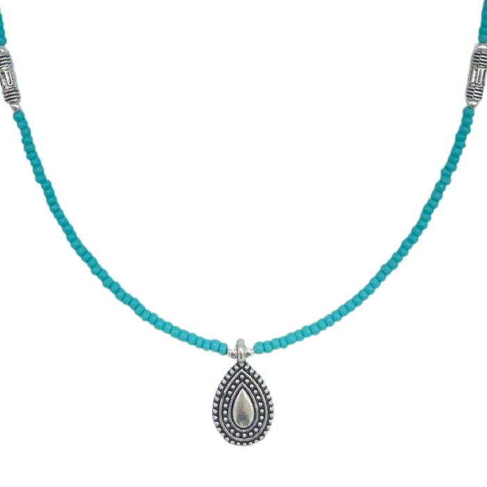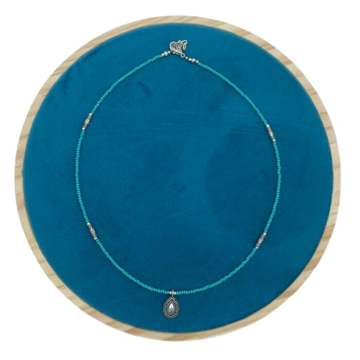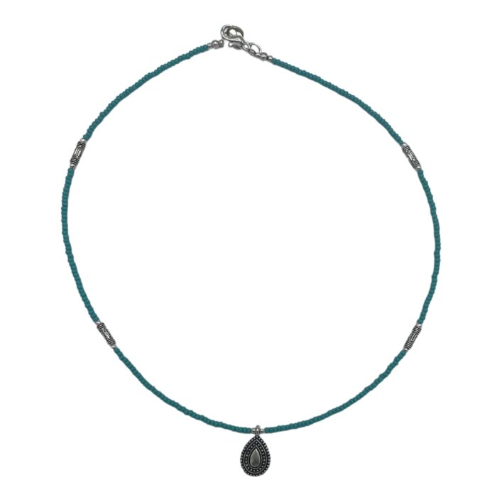 Add a touch of exotic charm to your collection with this Nepalese Extra Fine Gem Necklace – Turquoise & Teardrop handcrafted necklace