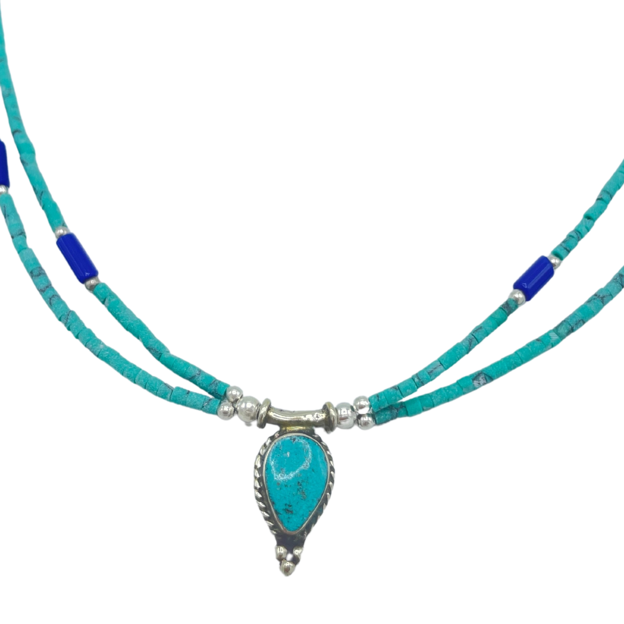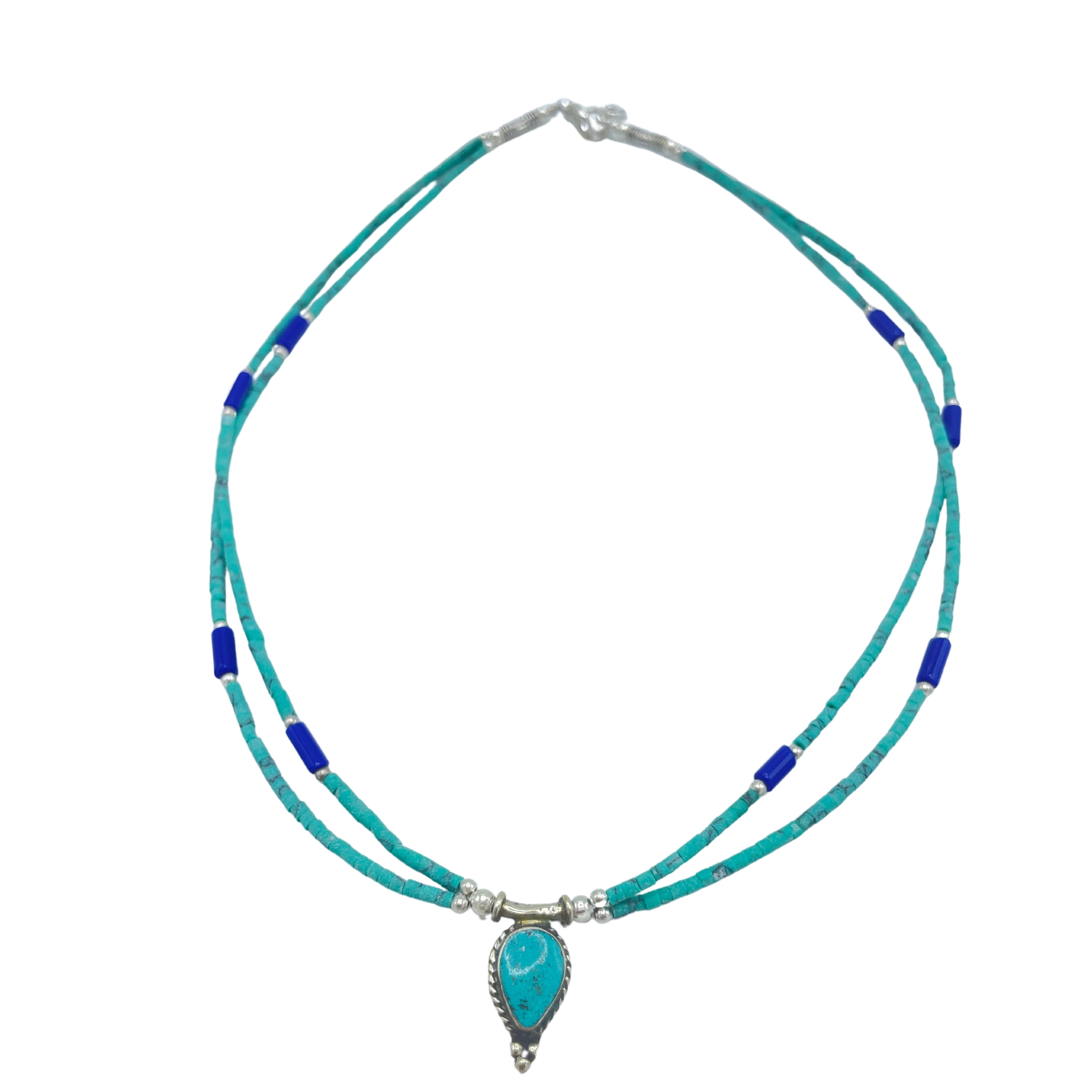 Nepalese Extra Fine Two Line Necklace – Lapis & Malachite Pendant