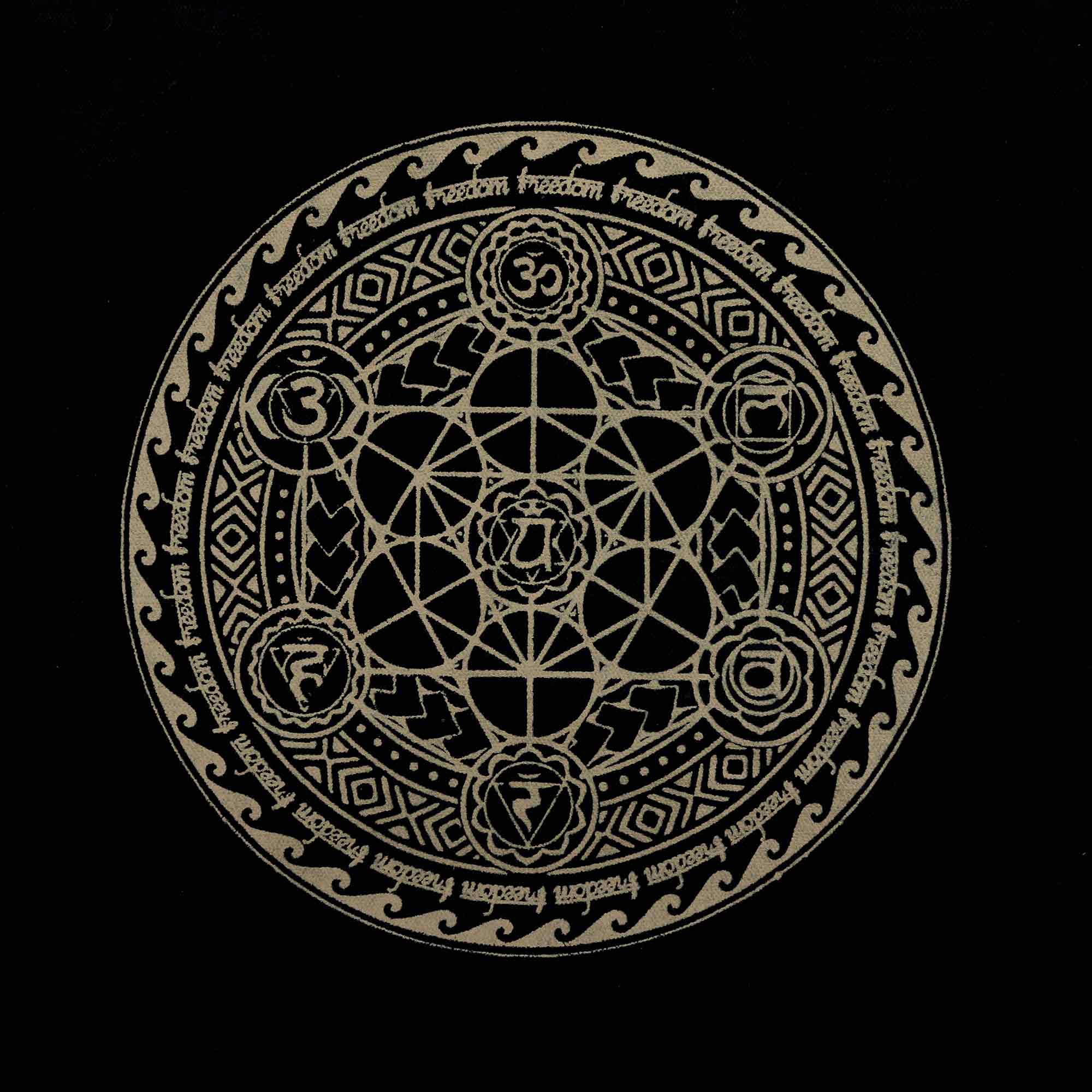 Made from heavyweight 14oz cotton and finished with a chocolate stonewash, this tote bag features a powerful Chakra Mandala design in rich gold print
