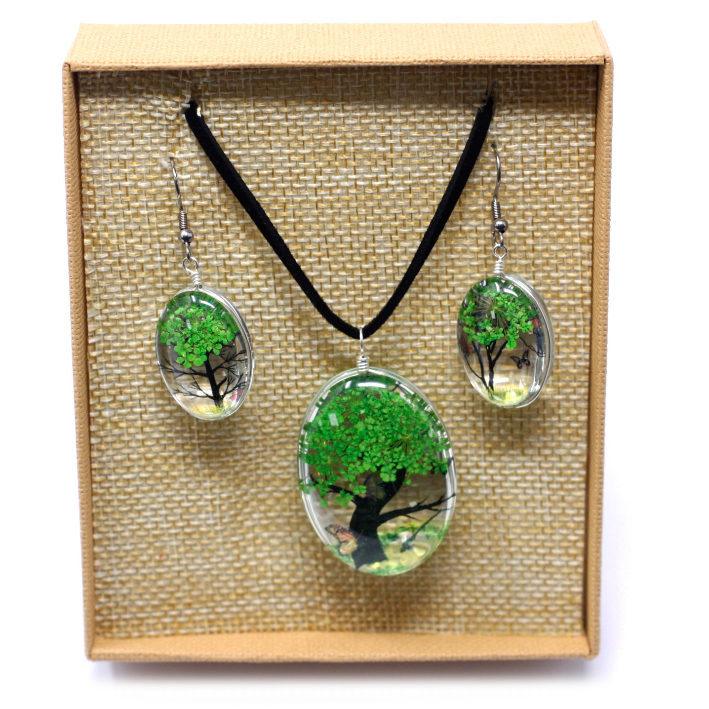 Amazingly , the Pressed Flowers – Tree of Life set – Green Real Pressed Flowers Jewellery is made with actual real flowers pressed in a piece of glass
