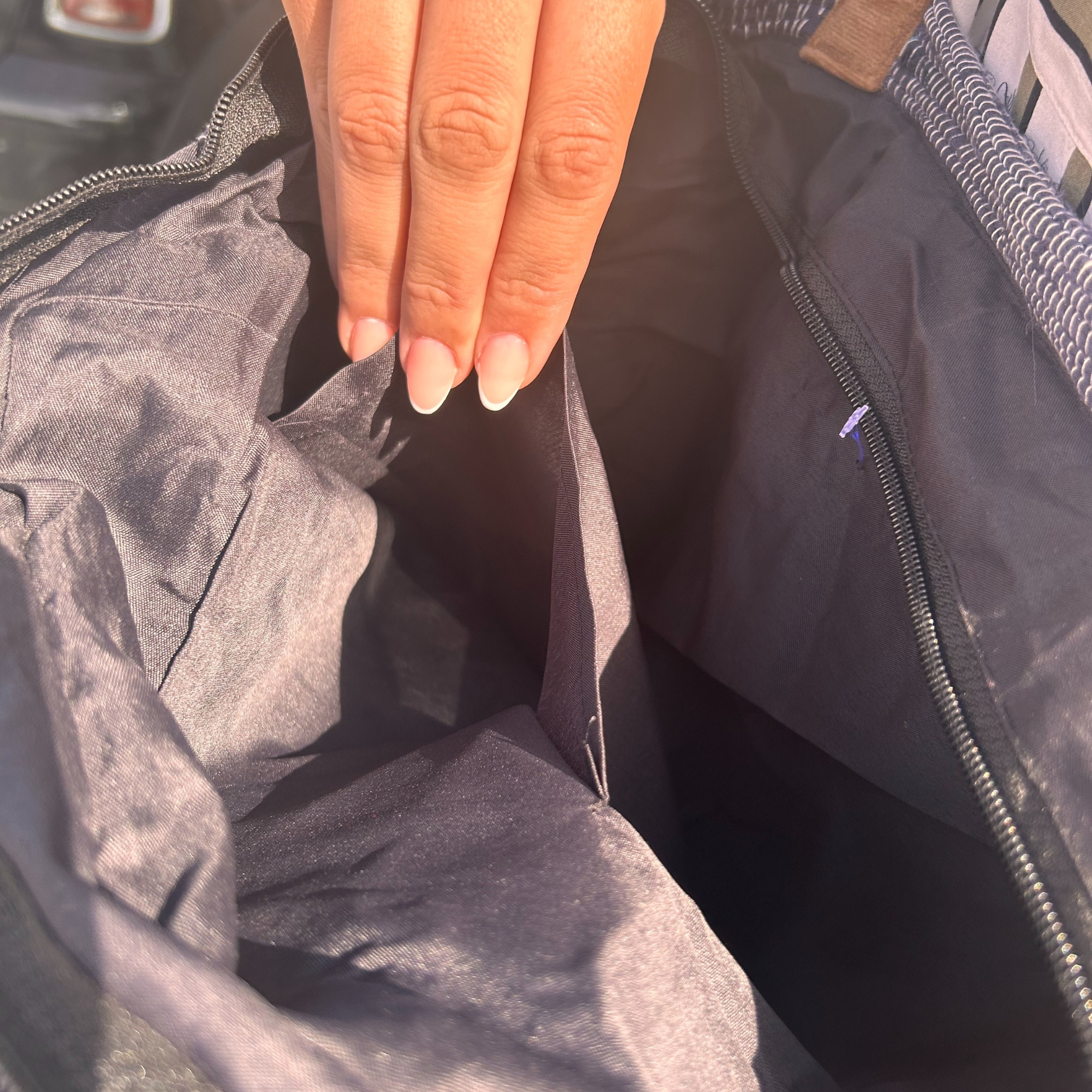 Recycled Big Rug Bag – Shades of Dusk, handmade in India from 100% recycled rugs, these bags are a beautiful blend of sustainability and style