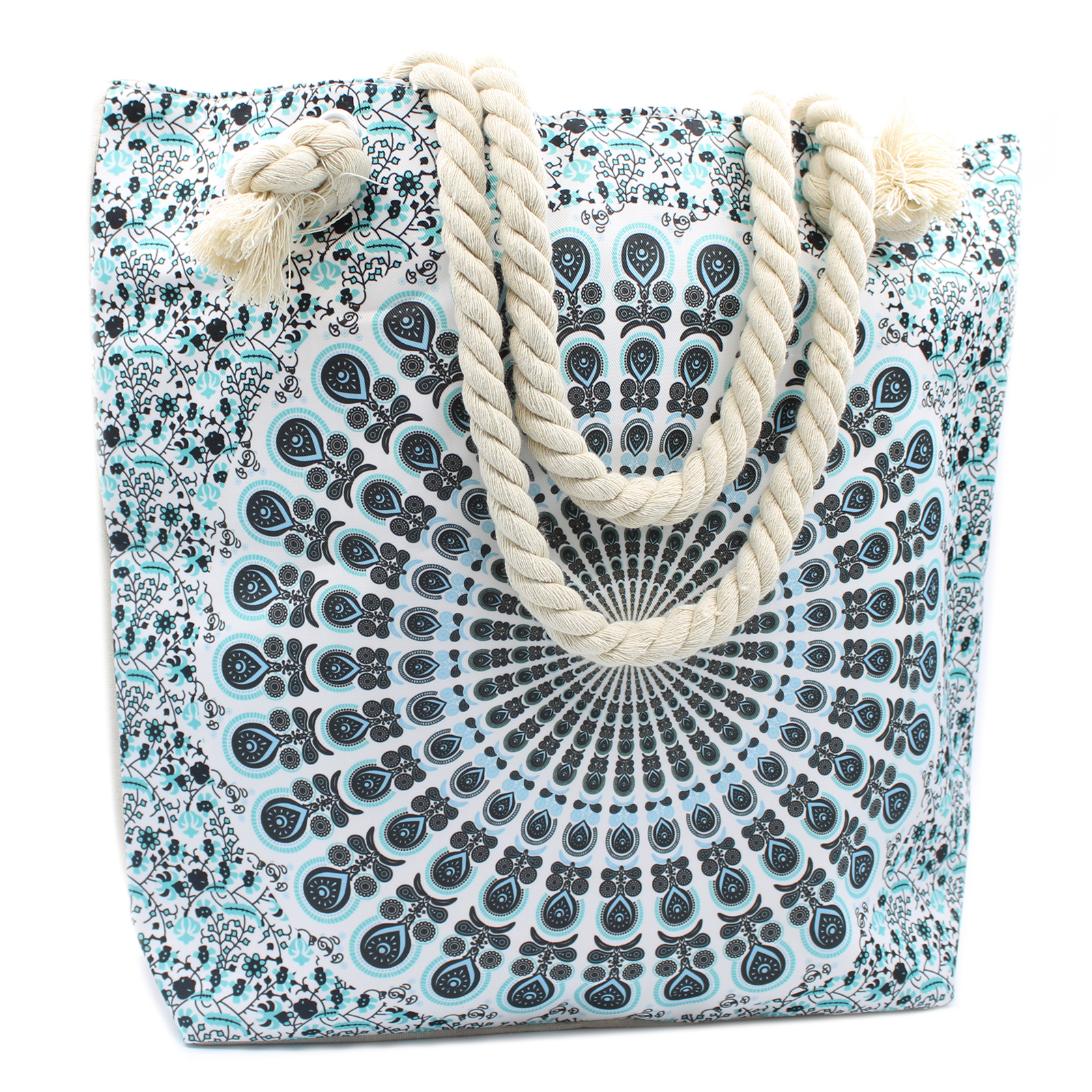 Rope Handle Mandela Bag – Sky Blue – This charmingly patterned  Mandala Bag is large enough for storing all of your essentials