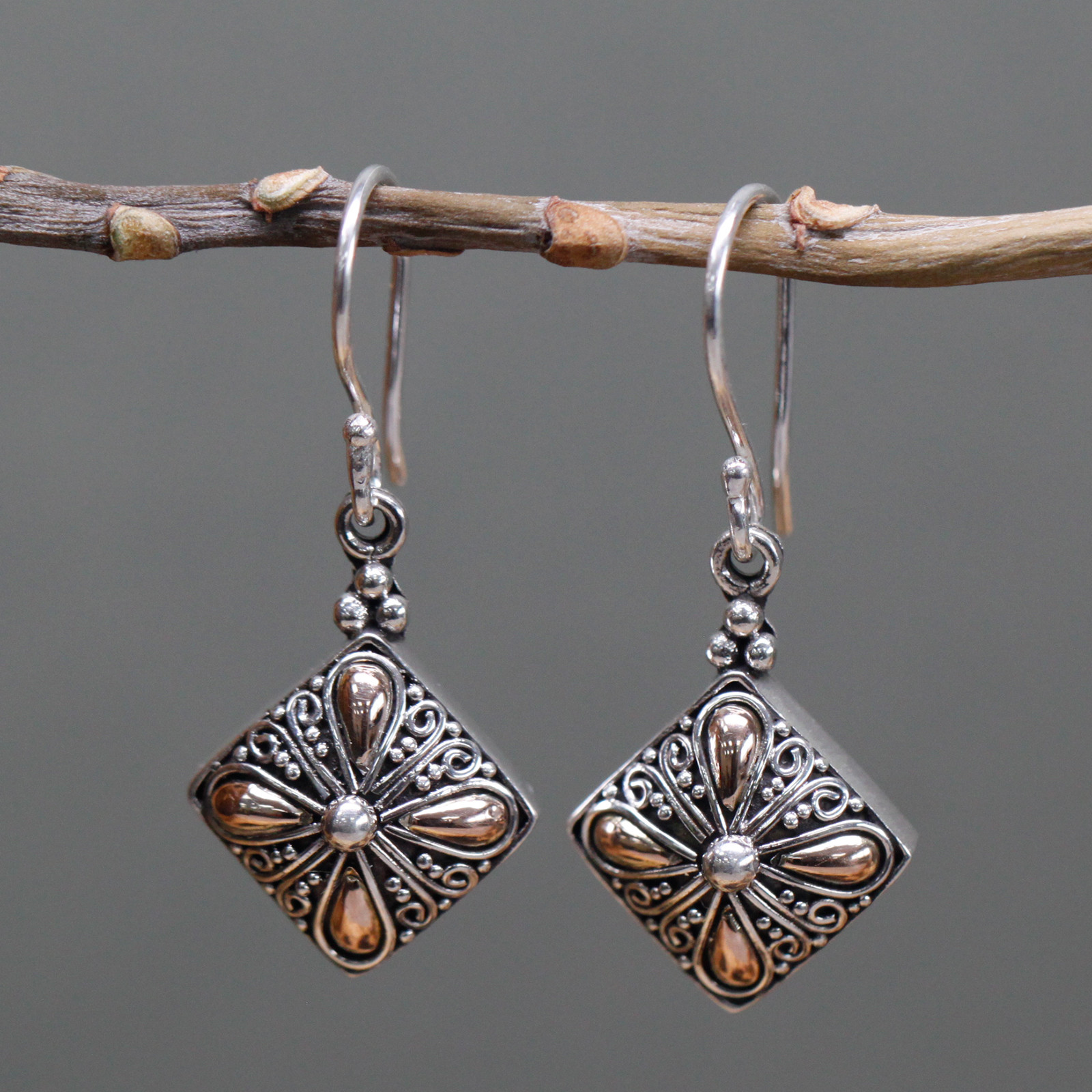 Enhance your jewellery collection with this Silver & Gold Earring – Square Drop set for our silver and gold jewellery collection