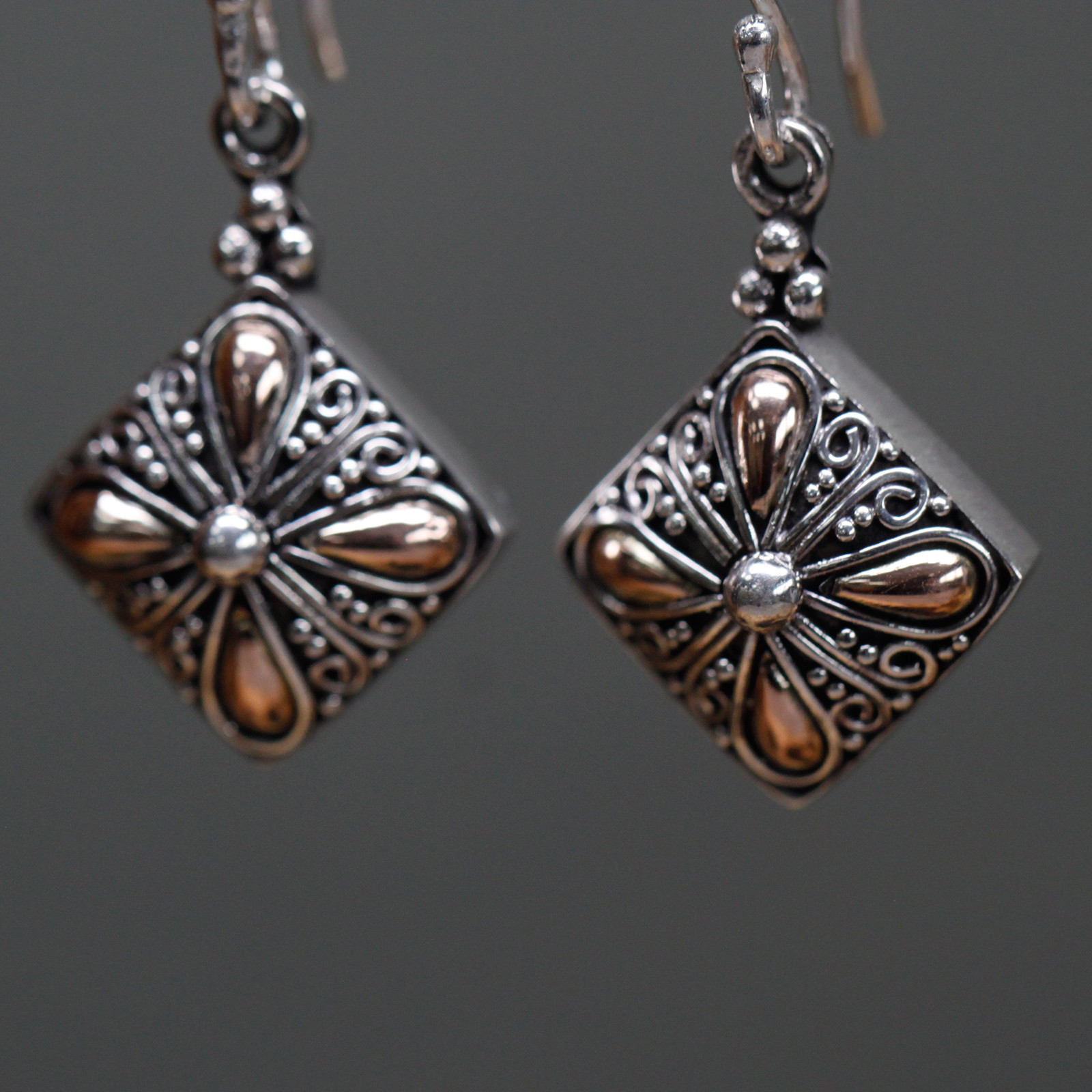 Silver & Gold Earring – Square Drop