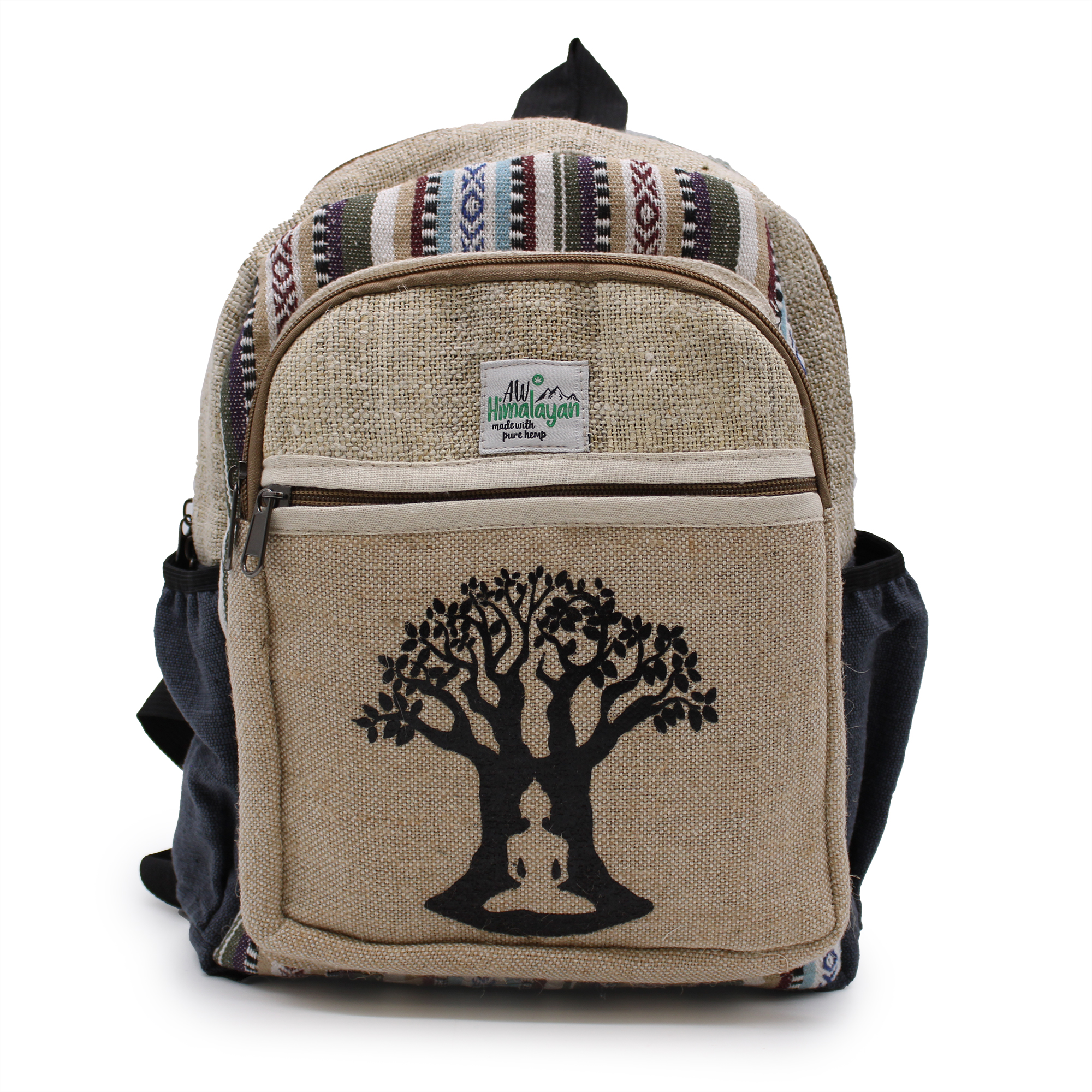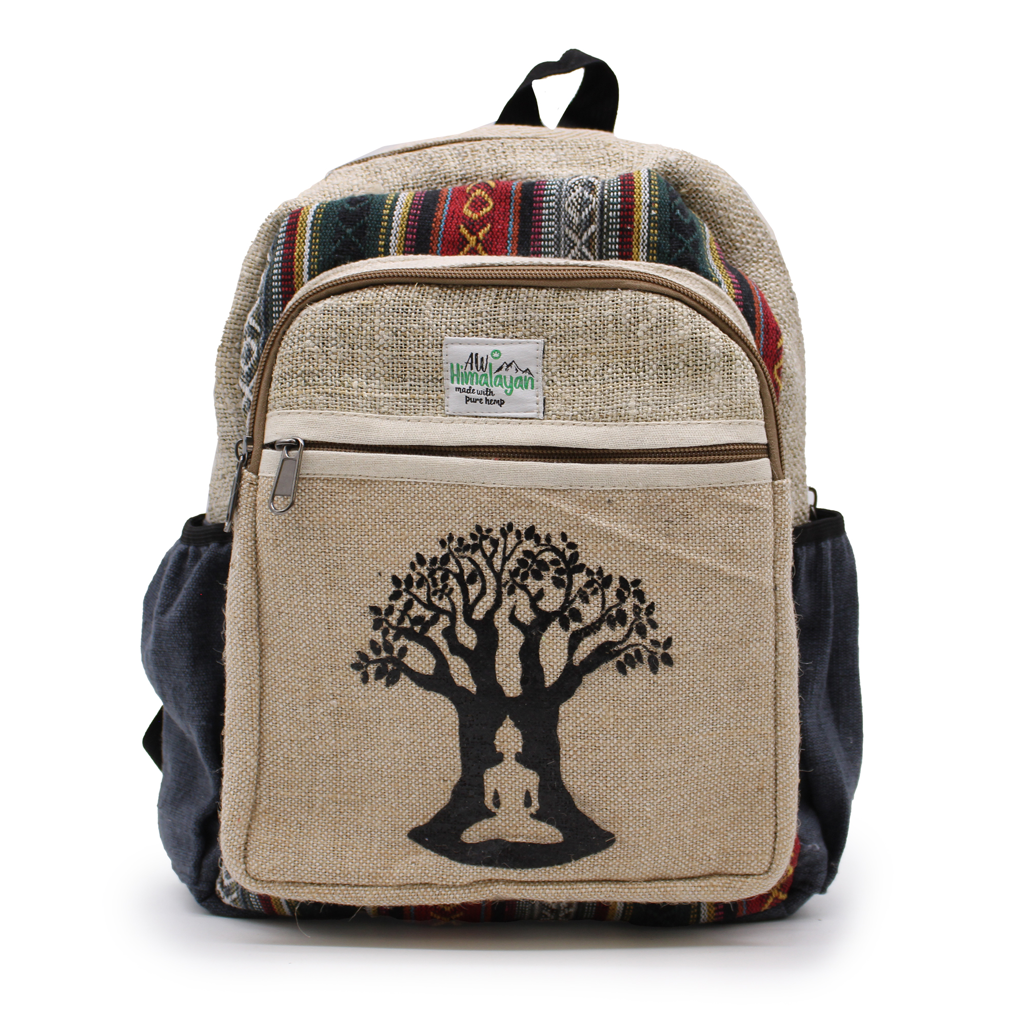 Embrace the beauty of nature with the Small Hemp Backpack featuring a Bohdi Tree Design