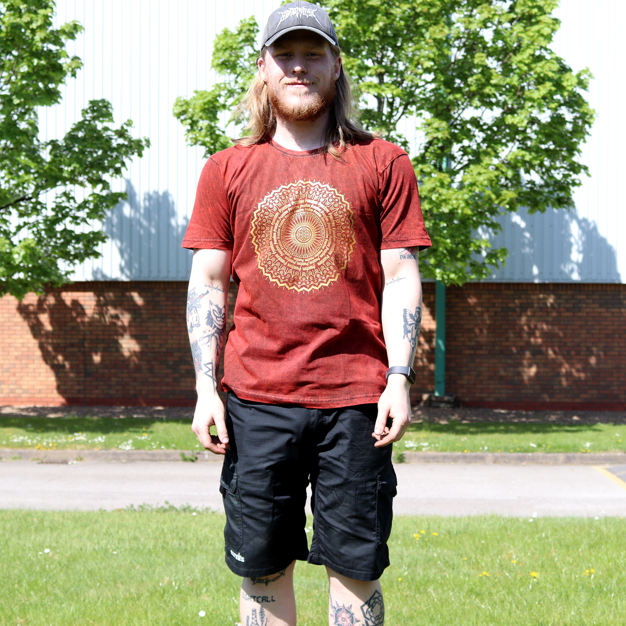 XLarge Stone Washed T-Shirt – Mandala – Maroon